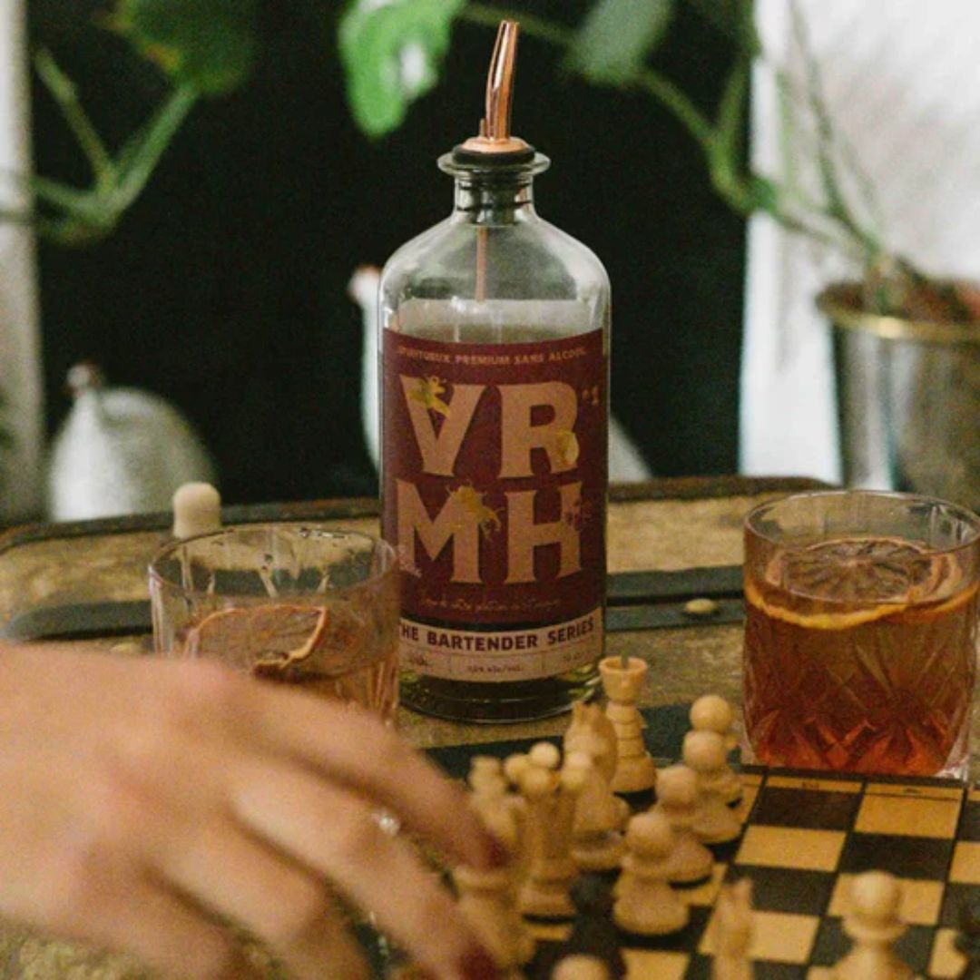 Designed to recapture all the flavors of great Italian aperitifs, VRMH n°1 was made from a dealcoholized white wine (0.0%) and botanical infusions, including absinthe and a mixture of spices, all then meticulously combined to obtain this unique alcohol-free spirit. Drink on ice, with sparkling water or in a cocktail. Ideal for revisiting all the Italian classics: the Americano, the Negroni, and the Manhattan.