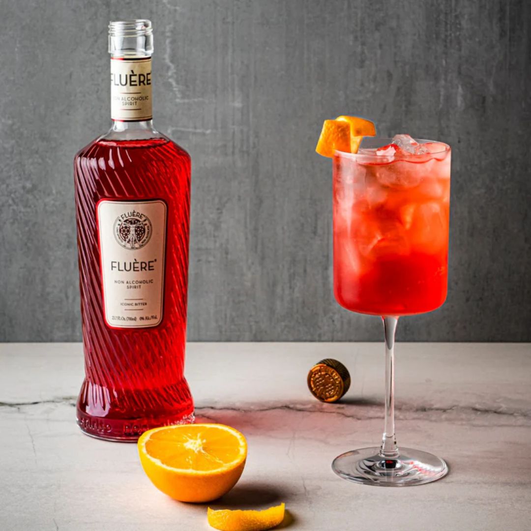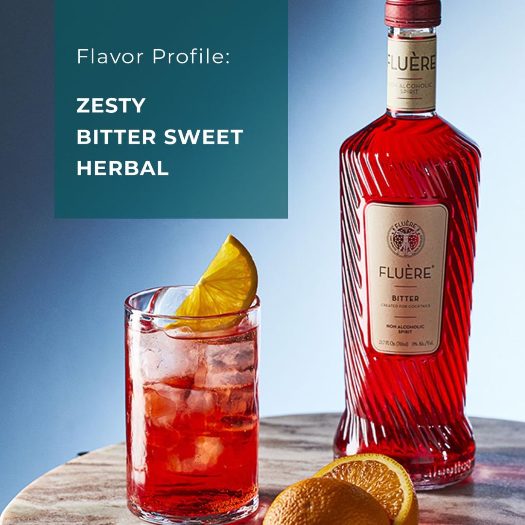 Introducing Fluère Bitter: Experience a harmonious blend of herbaceous bitterness and syrupy sweetness, enhanced with a hint of orange zest. The lingering finish is accompanied by a subtle touch of acidity. This product is best enjoyed as a refreshing long drink with sparkling water, like Fever-Tree Soda Water, and a garnish of orange slice, or as a Negroni crafted with Fluère Original.