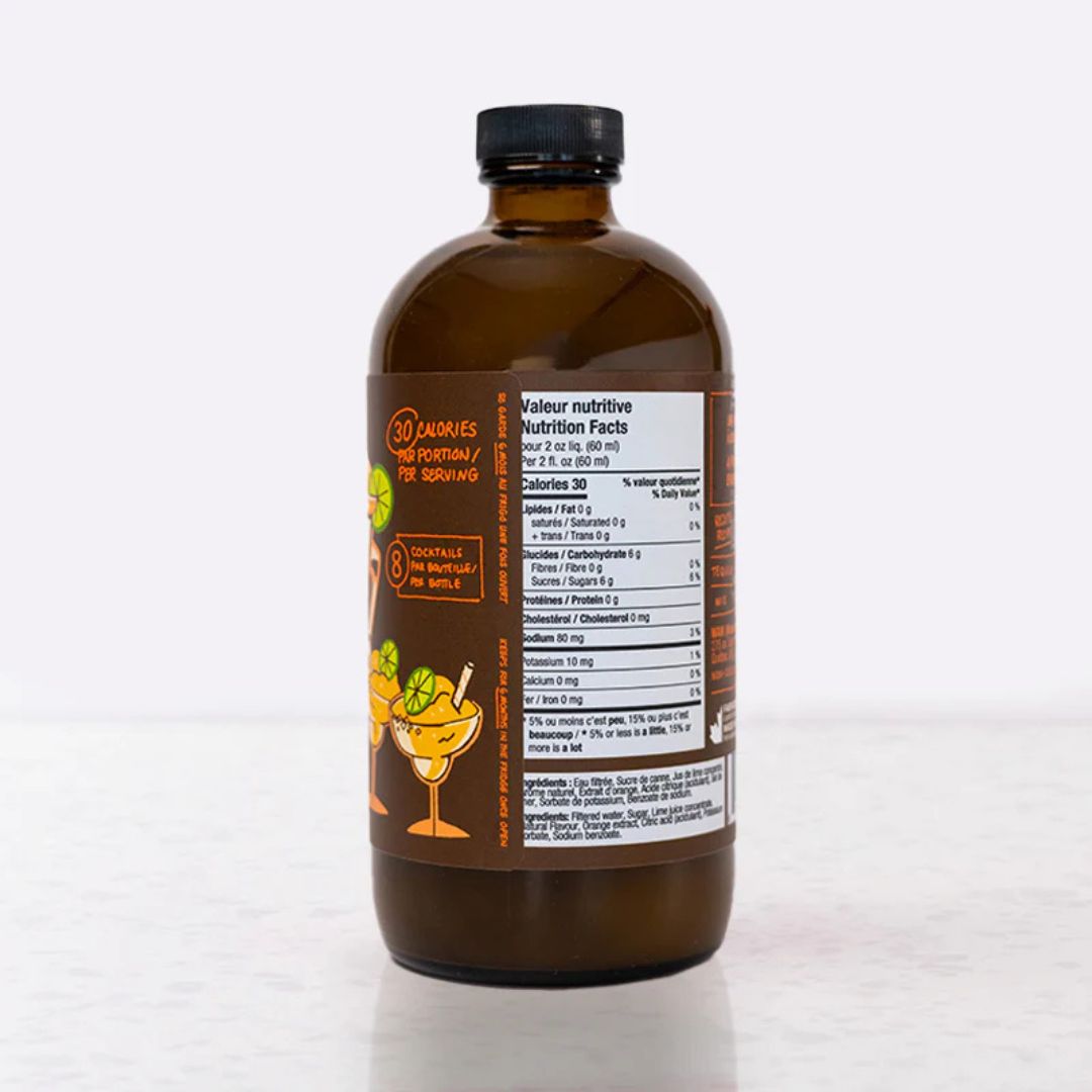 Ingredients: Filtered water, Cane sugar, Lime juice concentrate, Natural flavour, Orange extract, Citric acid (acidulant), Sea salt.