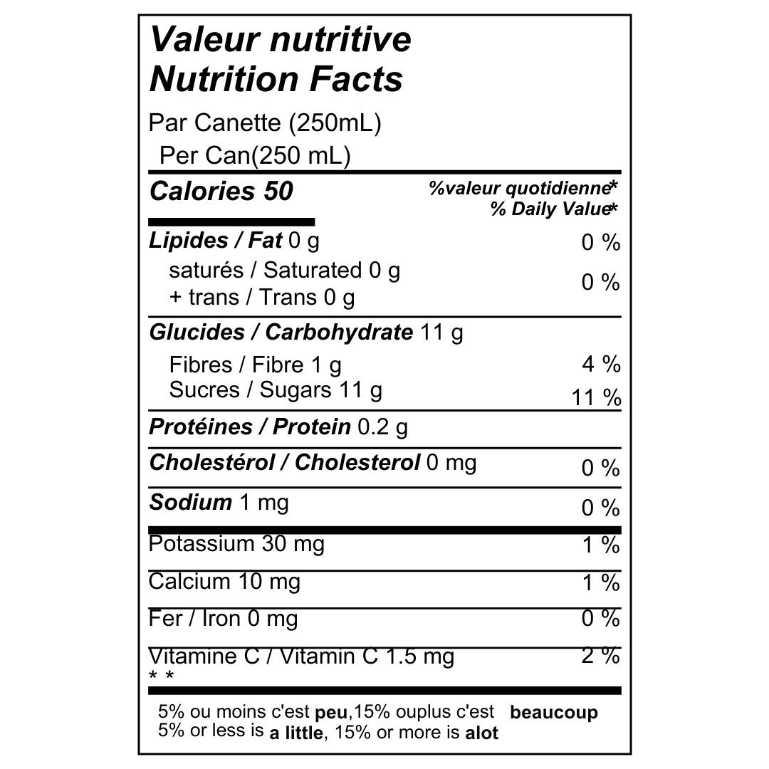Ingredients: Water, organic haskap berries, organic cane sugar, balsam fir, cedar, tartaric acid, potassium sorbate.