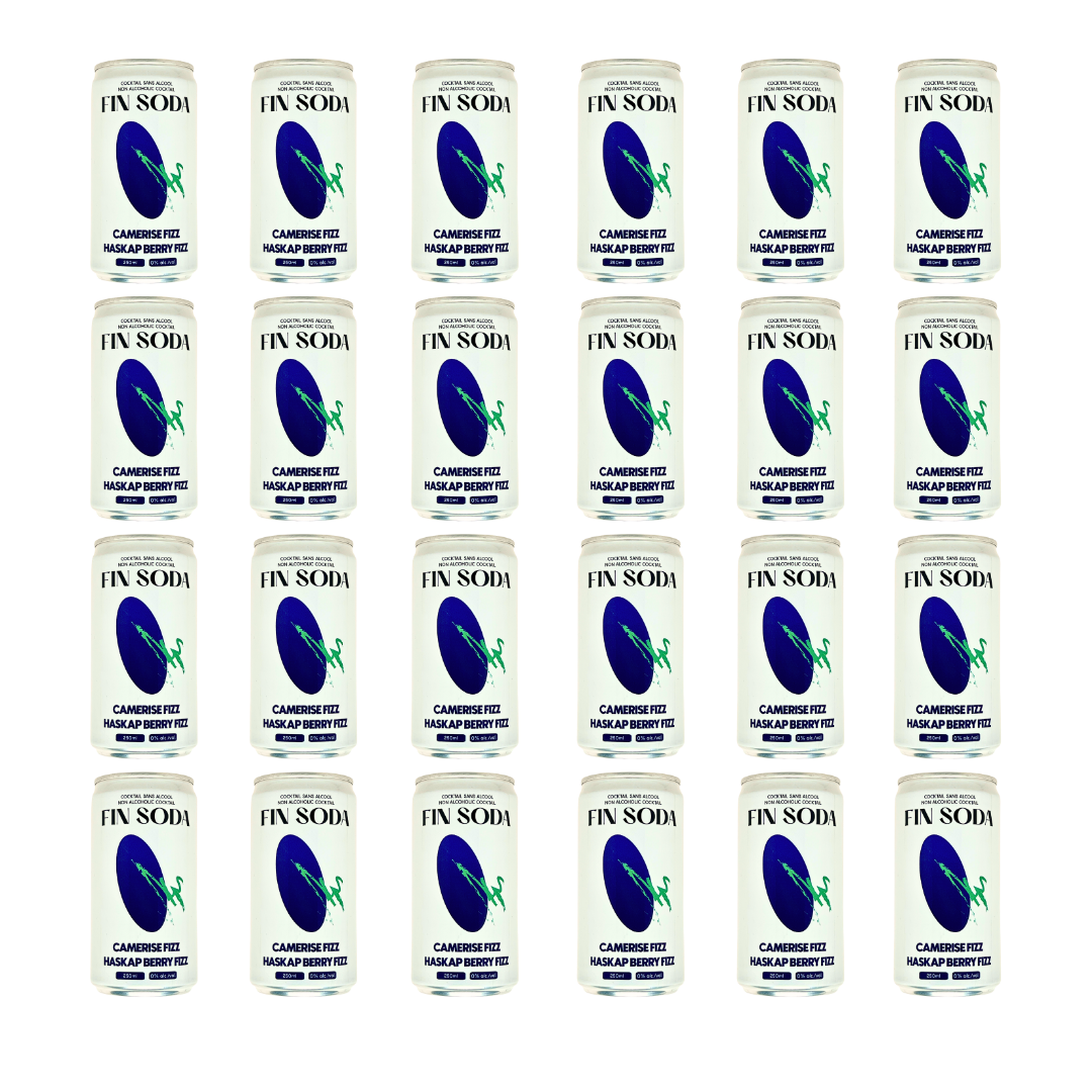 Fin Soda Haskap Berry Fizz is a vibrant homage to local ingredients and modern cocktail craft. Haskap berries bring a naturally tart, juicy flavour reminiscent of cranberry and blueberry, releasing a striking purple hue during fermentation. Balsam fir and cedar add aromatic depth and subtle forest complexity, creating a refreshing non-alcoholic cocktail that feels bold, bright, and beautifully balanced.