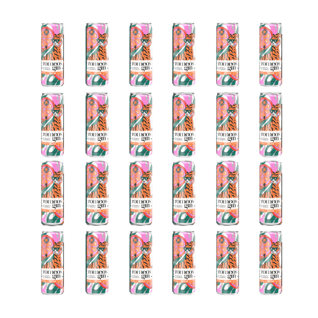 Discover the new and exciting addition to the non alcoholic romeo's lineup, a gin sour displaying sweet amaretto and juicy tangerine flavors, balanced with a vivid and lingering acidity. A bold creation inspired by the bar favorite Amaretto Sour, reinterpreted with a touch of junipery gin notes and sparkling bubbles for a fresh kick. The bright and colorful can design has been created by celebrated artist Dalkhafine, who splits her time between Montreal and Paris.