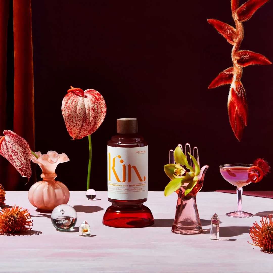 Raise the bar on social hour. Kin - High Rhode is a gently caffeinated, non-alcoholic, made-to-mix beverage infused with adaptogens, nootropics, and botanics like Rhodiola Rosea, 5-HTP, and GABA to conjure captivating conversation and release contagious energy that flows out to those around you and reverberates beyond.