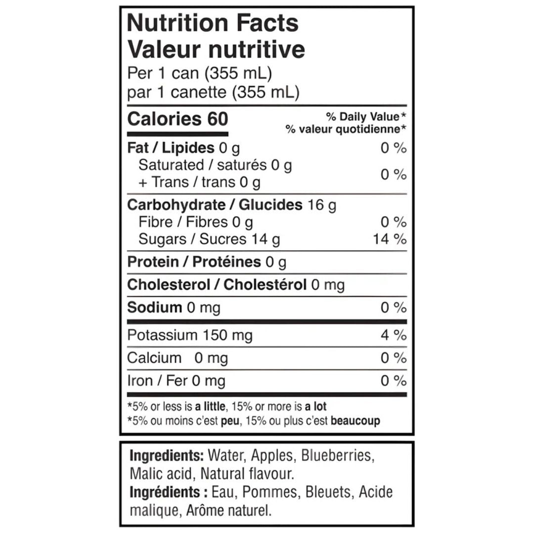 Ingredients: Water, Apples, Blueberries, Malic Acid