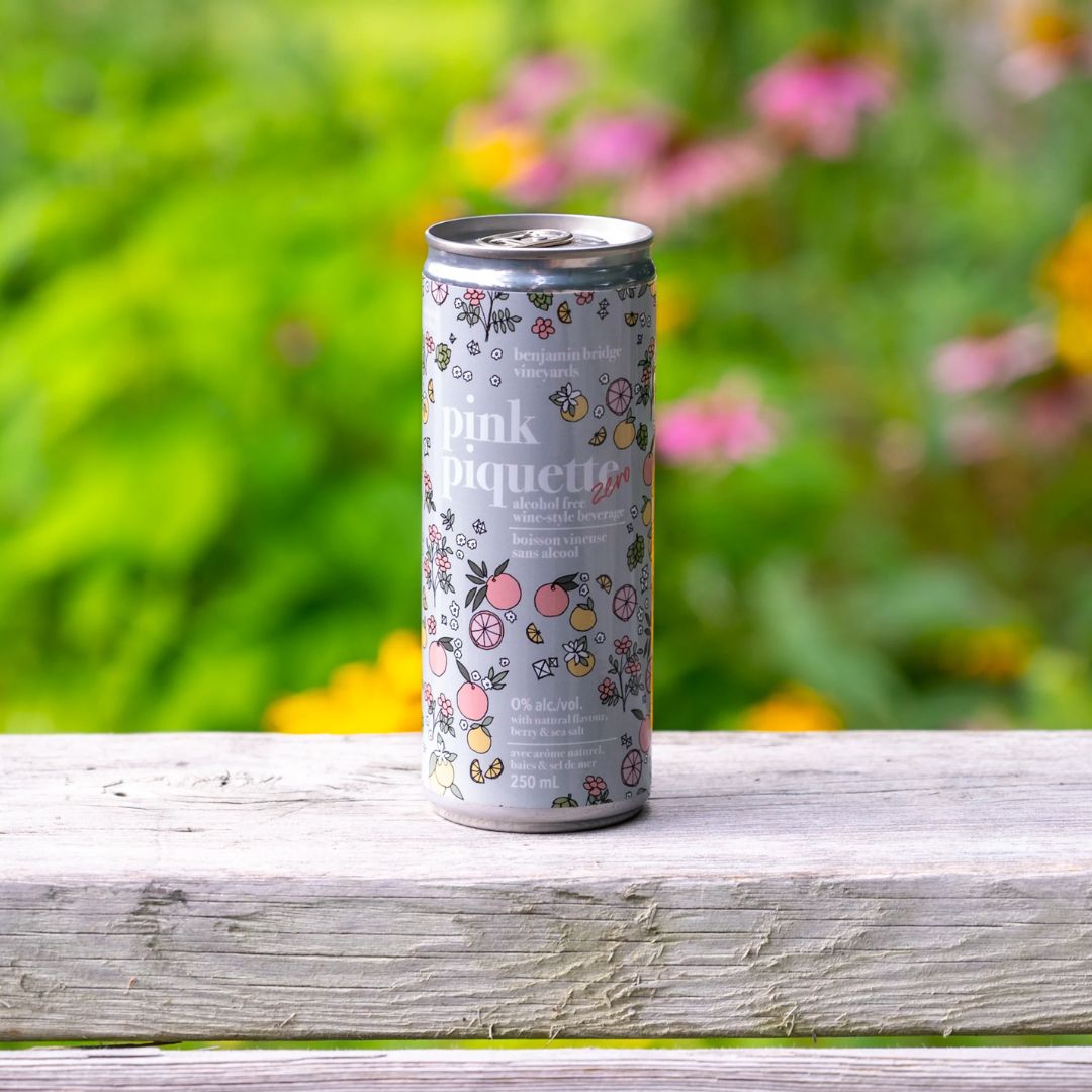 Suite au succès du lancement de la première alternative au vin sans alcool en Nouvelle-Écosse, Benjamin Bridge présente son pendant rosé : Pink Piquette Zero. Se distinguant par une teinte de pétale de rose sauvage dans le verre, Pink Piquette Zero offre un bouquet floral champêtre en harmonie avec un profil de saveur délicieux aux notes de fruit de la passion et d'agrumes. Fidèles à nos racines maritimes, nous avons ajouté une pincée de sel marin de la baie de Fundy pour compléter son palais délicat.