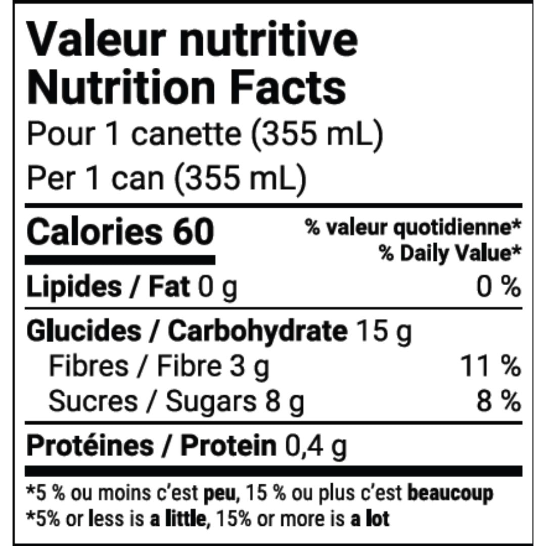 Ingrédients: Eau filtrée, sucres (sucre de canne Biologique, jus de pêche concentré Biologique, fruit du moine concentré Biologique), jus de citron concentré Biologique, inuline d'agave Biologique, arômes naturels Biologiques, thé vert Biologique, matcha japonais Biologique, bacillus subtilis DE111® (probiotique Végétalien).