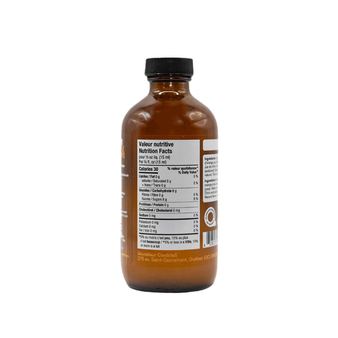 Ingrédients : Eau, sucre, jus d'orange, jus de citron, argousier, acide citrique (acidulant), quinine, zeste d'orange, thé du Labrador.