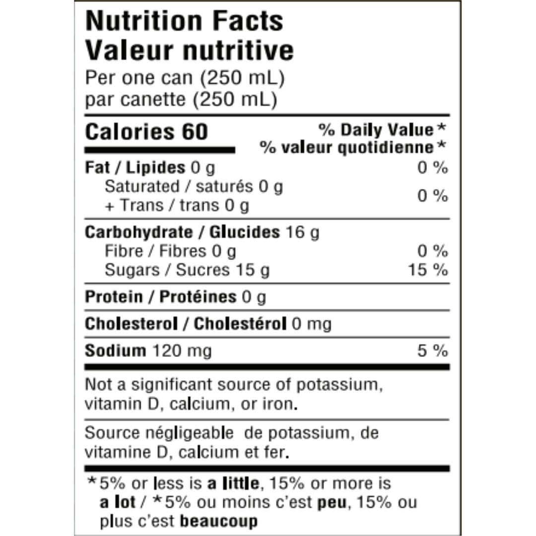Ingrédients :Moût de raisin Muscat, eau, vin, acide citrique, acide tartrique, acide malique, sel marin, tanins, colorant d'origine végétale, arômes naturels.
