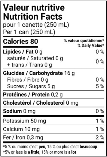 • Seulement 5 g de sucre par canette
