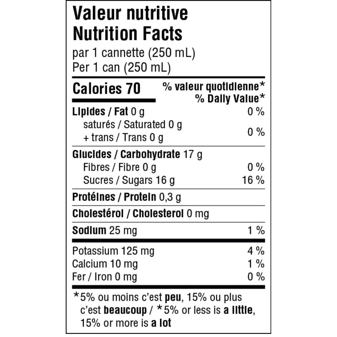 Ingrédients :Café infusé (eau, café), sucre, jus de citron concentré, arôme naturel, benzoate de sodium, sorbate de potassium.