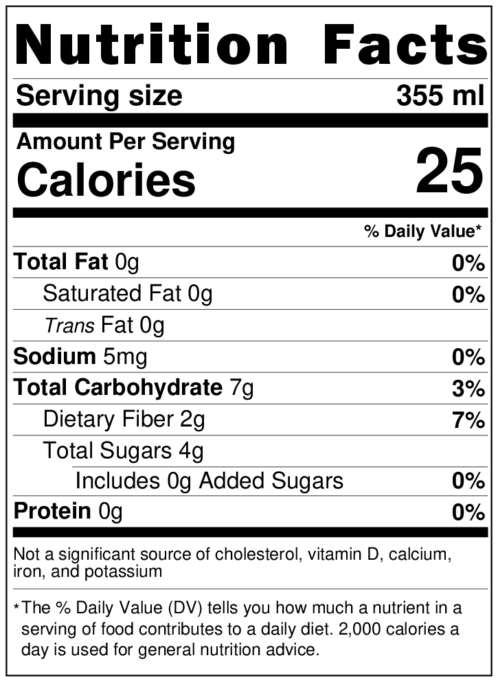 Ingrédients: Eau gazeuse, sucre de canne, vinaigre de cidre de pomme, inuline d'agave, arôme naturel, jus de Lem, jus de paille, extrait de stévia, concentré, Biologique