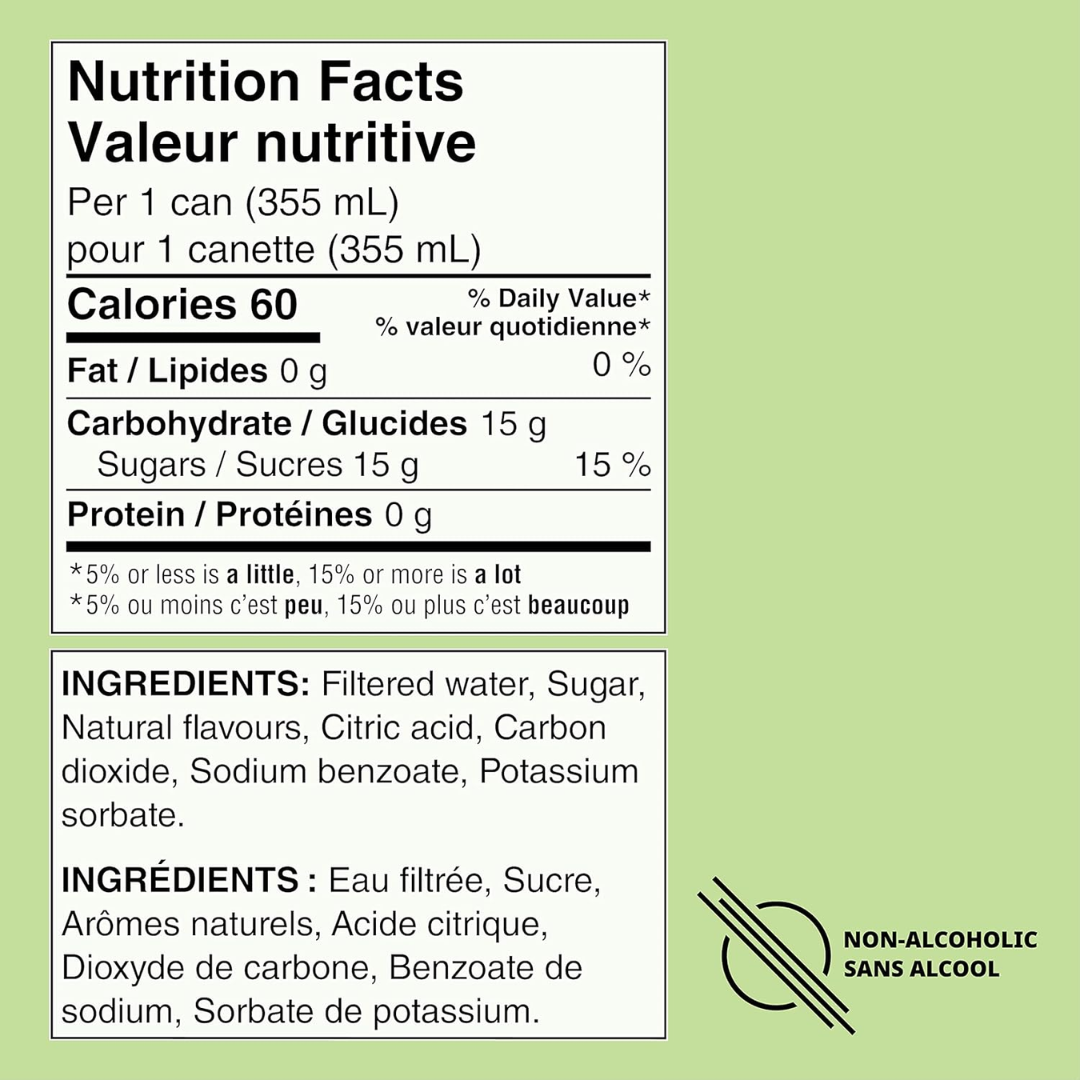 jeingrédients : Eau filtrée, sucre, arômes naturels, jus de citron, acide malique, dioxyde de carbone, benzoate de sodium, sorbate de potassium