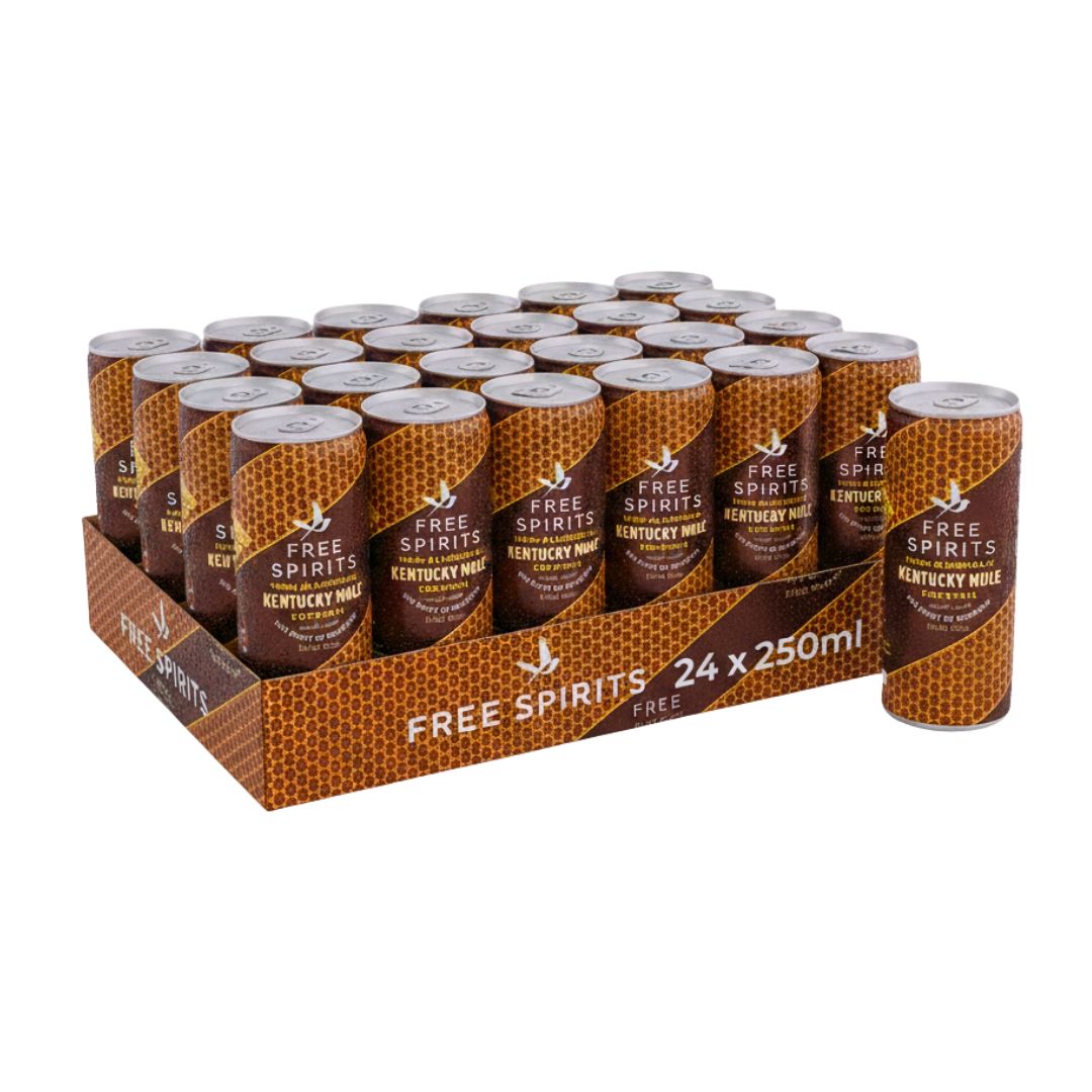 Free Spirits – Non-Alcoholic Kentucky Mule est un cocktail artisanal sans alcool prêt à déguster qui capture le charme classique d'un Kentucky Mule. Le gingembre frais et le citron Meyer se marient parfaitement avec des notes douces de chêne, offrant une expérience de cocktail légèrement pétillante et rafraîchissante sans alcool. Élaboré avec du vrai jus, des arômes naturels, des ingrédients fonctionnels et notre alternative de whisky sans alcool primée, The Spirit of Bourbon®, il est parfait à tout moment et en tout lieu.
