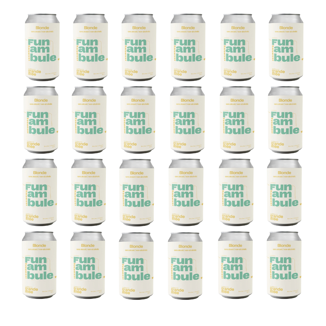 Grande Allée Funambule Blonde Ale est une bière blonde sans alcool qui brille par sa subtilité élégante. Légère, fraîche et d'une grande facilité à boire. Des arômes floraux rencontrent une douceur maltée délicate, équilibrée par une amertume douce et accueillante. Lisse, facile à boire et pleine de caractère lumineux—la preuve que la grande saveur n'a pas besoin d'alcool.