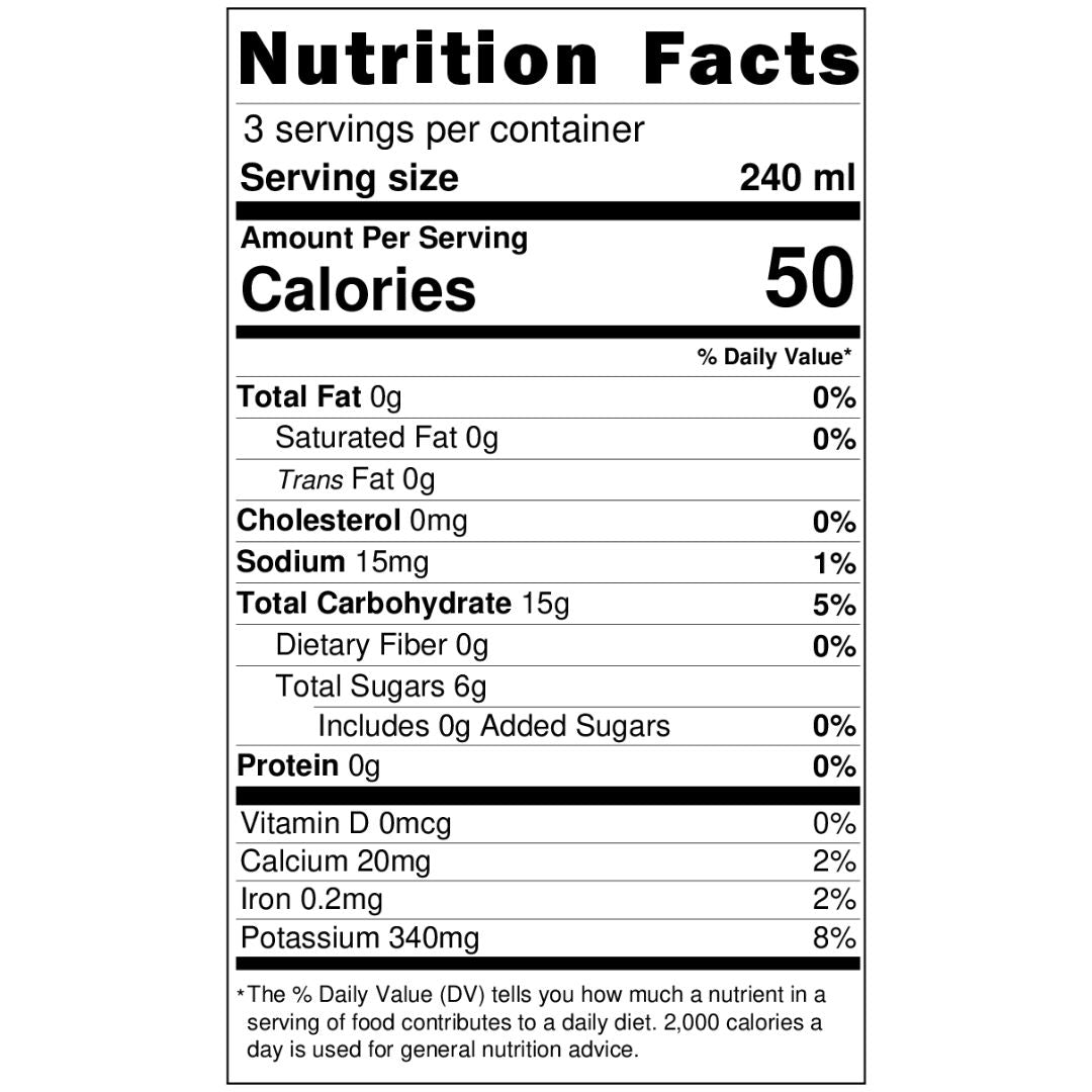 Ingrédients : Vin de cabernet sauvignon désalcoolisé, concentré de raisin, arôme naturel, benzoate de sodium, sorbate de potassium, métabisulfite de potassium. Contient des sulfites.