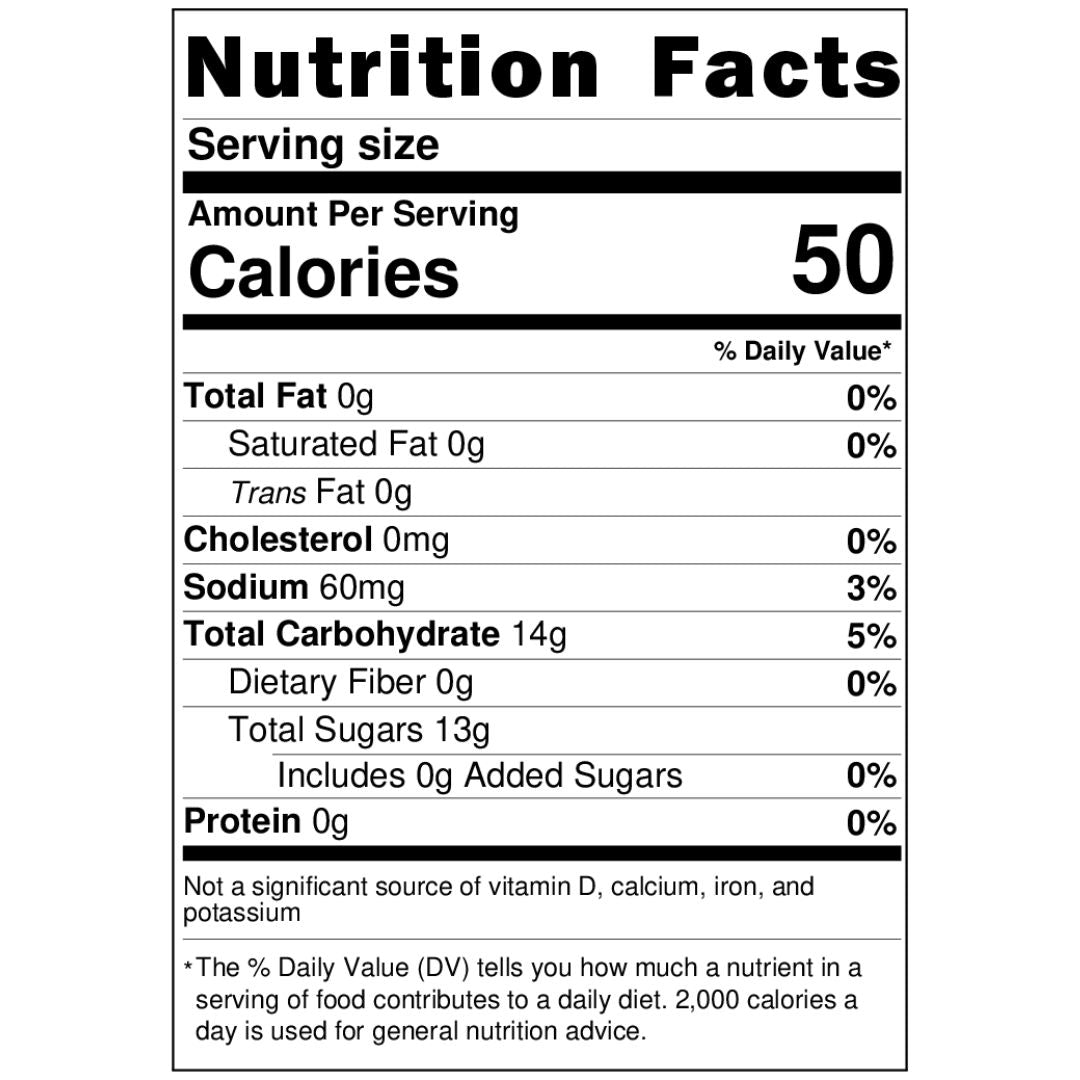 Ingredients: Natural spring water, sugars, natural flavors, citric acid, carbon dioxide, potassium sorbate, sodium benzoate.